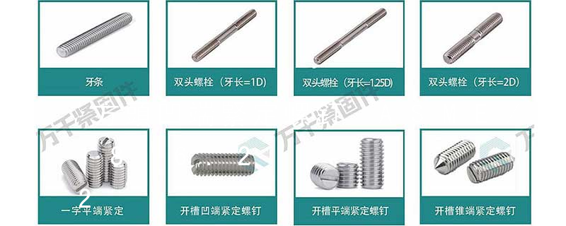 開槽和內六角緊定螺釘,適用于不允許螺釘外露的場合,方頭緊定螺釘適用于允許釘頭外露的場合。以螺釘的壓緊力而言,開槽緊定螺釘較小,內六角緊定螺釘次之,方頭緊定螺釘較大。錐端螺釘適用于硬度低的零件上;截錐端螺釘適用于壓緊面處制有凹坑的零件上;平端和凹端螺釘適用于硬度較大或經常需要