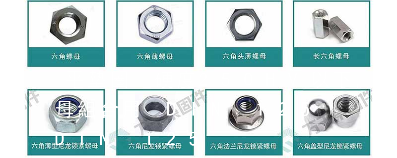 ②開槽螺母:主要指六角開槽螺母,即在六角螺母上方加工出糟。它與螺桿帶孔螺栓和開口銷配合使用,以防止螺栓與螺母的相對轉動,見GB6178—6181等。③鎖緊螺母:指具有鎖緊功能的螺母,有尼龍嵌件六角鎖緊螺母,見GB889、GB6182、GB6183和全金屬六角鎖緊螺母,見GB6184—6187。④特殊用途螺母:如碟形